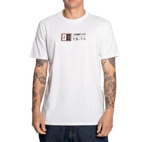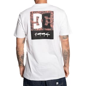 Camiseta Dc Shoes feita em modelagem regular, meia malha 30.1, estampa frente e costas e etiquetas personalizadas.