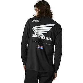 Camiseta de manga comprida Honda preta — A costura lateral mantém a integridade e a estrutura lavagem após lavagem — Feita sob medida para uma aparência mais fina — Textura ultramacia — Sensação leve