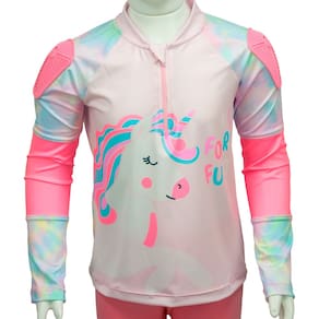 Confeccionada com tecido macio e leve, a camiseta garante liberdade de movimento e toque suave na pele. A parte das costas é feita com material respirável, promovendo excelente circulação de ar para manter as crianças frescas durante o dia. Com proteção solar UV 50+, a camiseta oferece segurança contra os raios solares, e ainda conta com reforço nos ombros e cotovelos para maior proteção. Ideal para o dia a dia, oferecendo conforto, proteção e praticidade.