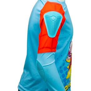 Confeccionada em tecido macio e leve, ela proporciona sensação agradável ao toque, permitindo liberdade de movimento. Sua parte traseira possui material respirável, que favorece a circulação do ar e mantém a criança fresca mesmo nos dias mais quentes. Com proteção solar UV 50+, ela oferece segurança contra os raios solares, além de contar com proteção adicional nos ombros e cotovelos, garantindo ainda mais proteção durante brincadeiras e aventuras.