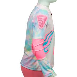 Confeccionada com tecido macio e leve, a camiseta garante liberdade de movimento e toque suave na pele. A parte das costas é feita com material respirável, promovendo excelente circulação de ar para manter as crianças frescas durante o dia. Com proteção solar UV 50+, a camiseta oferece segurança contra os raios solares, e ainda conta com reforço nos ombros e cotovelos para maior proteção. Ideal para o dia a dia, oferecendo conforto, proteção e praticidade.