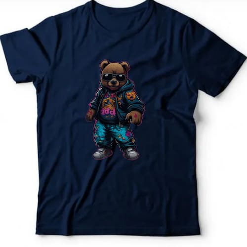Camiseta desenhos - Bear estiloso - Azul Marinho - G