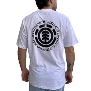 Camiseta Element feita em modelagem regular fit, estampa localizada frente e costas e etiquetas personalizadas.