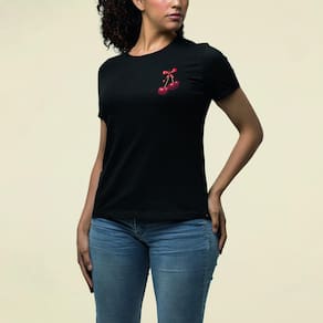 Camiseta Feminina Baby Look Cereja Estampa Minimalista