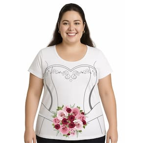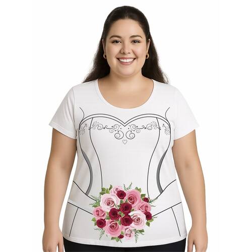Camiseta Feminina Manga Curta Noiva Buquê.