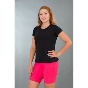 Camiseta Feminina Fitness Preta Lean Benefícios Fit confortável, alta elasticidade, liberdade de movimento Ótima respirabilidade, aeração, sensação de frescor Não retém suor Tecido tecnológico com fator de proteção solar UV 50+, proteção para sua pele Secagem rápida, não amassa Característica Camiseta de manga curta, gola em U Costura trançada Confeccionada em tecido leve de poliamida e elastano Recomendação Camiseta T-shirt para academia, yoga, funcional, pilates, corrida de rua e casual. Composição do Tecido Poliamida: 87%; Elastano: 13% Tabela de Medidas (cm): Tam P: Busto 84 - 90; Manga 13; Comprimento 56 Tam M: Busto 90 - 96; Manga 15; Comprimento 59 Tam G: Busto 96 - 102; Manga 16; Comprimento 61