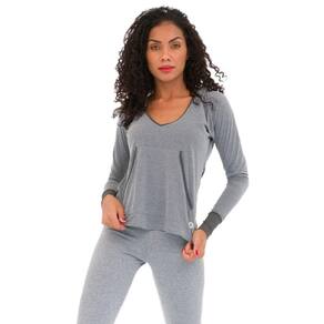 Camiseta T-shirt de manga longa com capuz adequada para atividades físicas e casuais.
