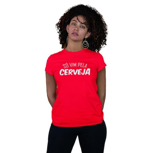 Camiseta Feminina Só Vim Pela Cerveja Engraçada Bebidas - Vermelho - M