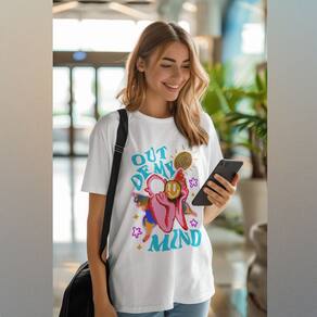 Garanta já a sua Camiseta Feminina Estampada Branca Out Of My Mind e leve para o seu guarda-roupa uma peça atemporal, confortável e cheia de estilo!
