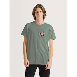 Camiseta Hang Loose Wax, possui estampa em silk frontal e nas costas e etiquetas Hang Loose. Confeccionada em tecido meia malha 30/1.