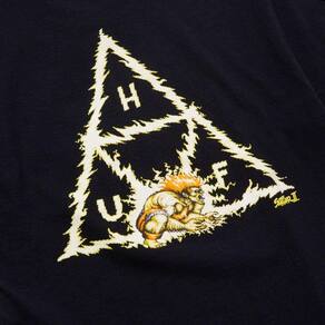 A Camiseta HUF X Street Fighter Blanka celebra o icônico jogo de 16 bits do final dos anos 80 e 90, confecionada em algodão de malha pesada oferece ótima qualidade, a estampa frente e costas traz o triãngulo triplo eletrizado referênciado ao um dos ataques do personagem.Detalhes: * Composição: 100% Algodão Pré Encolhida * Stret Fighter Estampado Na Manga Esquerda* Manga Curta * Gola Canelada* Estampa Frontal e Costas * ImportadoCuidados e Limpeza: * Lave a mão ou na máquina* Na secagem,seque ele sempre na sombra,evitar utilizar secadora de roupas* Não Passar Ferro Sobre a Estampa* Não usar alvejantes, e nenhum outro produto químico