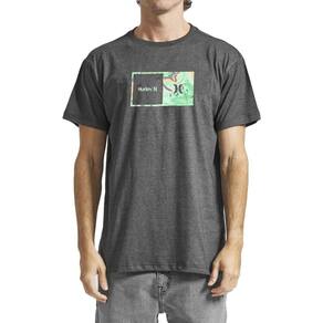 Camiseta Hurley silk, meia malha 30.1, gola rebatida, modelagem oversize, estampa localizada a base d'água e etiqueta clips na barra.