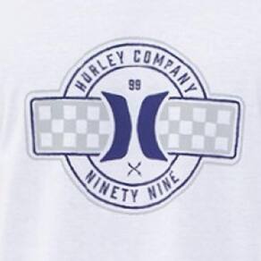 Camiseta Hurley feita em meia malha 30.1, gola rebatida, estampa localizada base d'agua e etiqueta clips ONE&ONLY na barra.