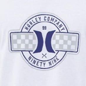 Camiseta Hurley feita em meia malha 30.1, gola rebatida, estampa localizada base d'agua e etiqueta clips ONE&ONLY na barra.
