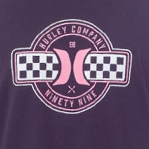 Camiseta Hurley feita em meia malha 30.1, gola rebatida, estampa localizada base d'agua e etiqueta clips ONE&ONLY na barra.
