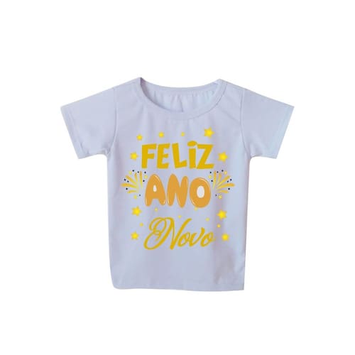 Camiseta Infantil Manga Curta Feliz Ano Novo.