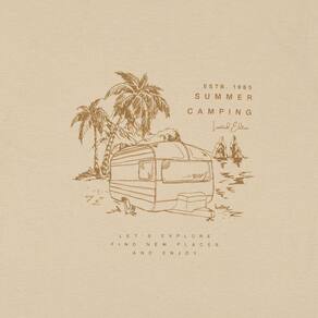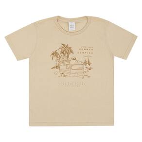Peça divertida e moderna para acompanhar seu pequeno em todos os momentos do dia a dia. Confeccionada em meia malha na cor areia, possuí gola redonda e estampa frontal de acampamento na praia com escrita "Acampamento de verão. Vamos explorar encontre novos lugares e aproveite. Desde 1985 edição limitada".