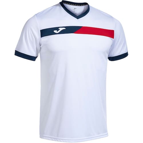 Camiseta Joma Court Branca e Marinho Masculina caracteriza-se por ser especialmente confortável, leve e durável. Fabricado com tecido respirável que expele o suor e mantém o corpo seco.