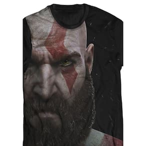 Com Kratos estampado em seu peito ela é perfeita para aqueles que são fãs de estampa de jogos.