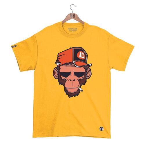 Camiseta Máfia club Gola Redonda Estampa MONKEY Streetwear fio 30.1 Penteado. - Amarelo - XG