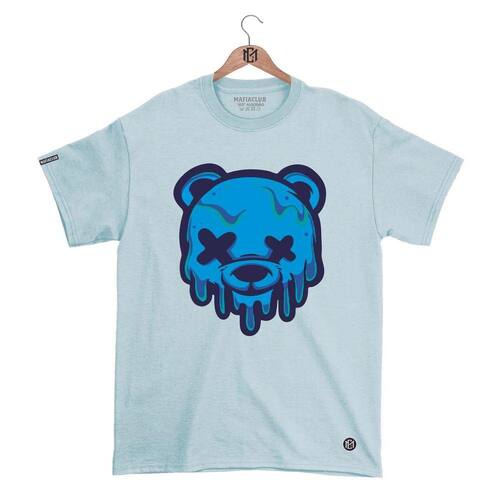 Camiseta Máfia club Gola Redonda Estampa URSO XX 2 Streetwear fio 30.1 Penteado. - Azul Claro - G