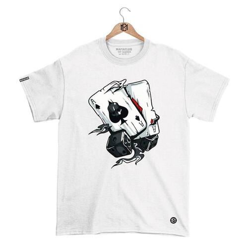 Camiseta Mafiaclub Gola Redonda Estampa BARALHO Streetwear fio 30.1 Penteado. - Vermelho - XG