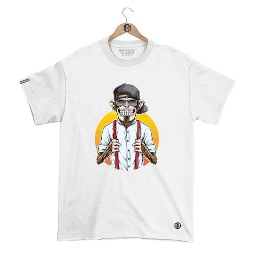 Camiseta Mafiaclub Gola Redonda Estampa MONKEY ll Streetwear fio 30.1 Penteado - Branco - G