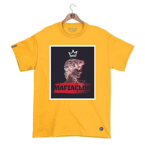 Camiseta Máfiaclub Gola Redonda Estampa QUADRO MÁFIA Streetwear fio 30.1 Penteado. - Amarelo - P