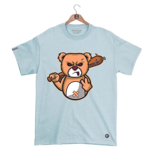 Camiseta Máfiaclub Gola Redonda Estampa URSO BRABO Streetwear fio 30.1 Penteado. - Azul Petróleo - XG