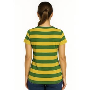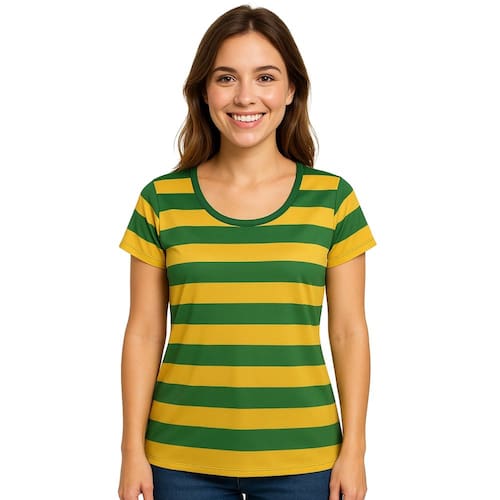 Camiseta Adulta Feminina Listrada Verde/Amarela.