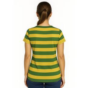 Camiseta Adulta Feminina Listrada Verde/Amarela.