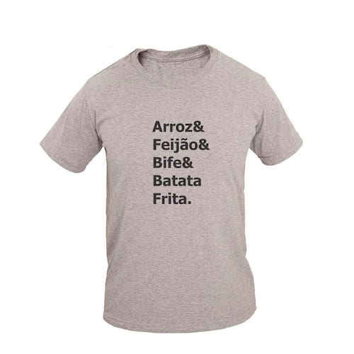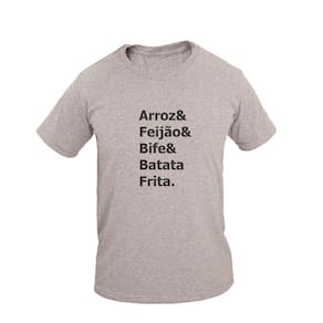 Camiseta Masculina Algodão Manga Curta Arroz Feijão Casual - Cinza - GG