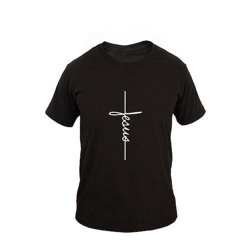 Camiseta Masculina Casual Algodão Manga Curta Cruz Jesus - Preto - GG