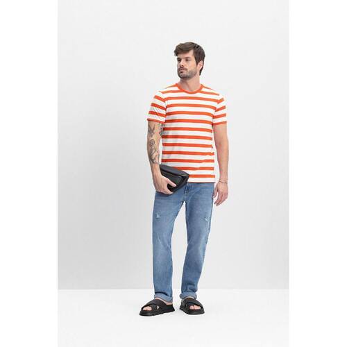Camiseta masculina com listras Essendi Camiseta Listrada Street Masculina Essendi P - Laranja - XXG