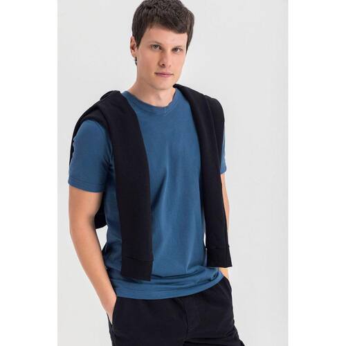 Camiseta masculina em malha Essendi - Azul Marinho - G