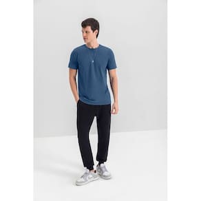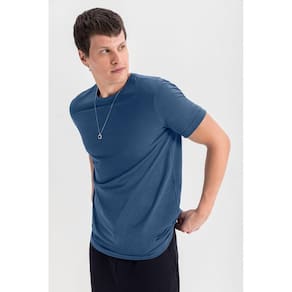 Camiseta masculina em meia malha Essendi - Azul Marinho - P