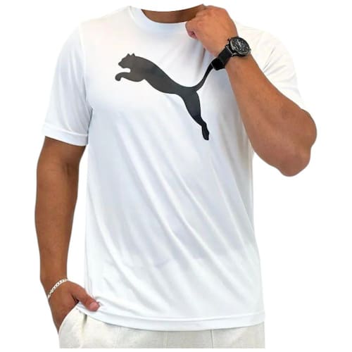 Camiseta Masculina Esportiva Fitness Dia a Dia Corrida Treino Academia Caminhada Manga Curta Puma Logo Poly Tee