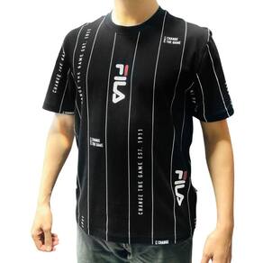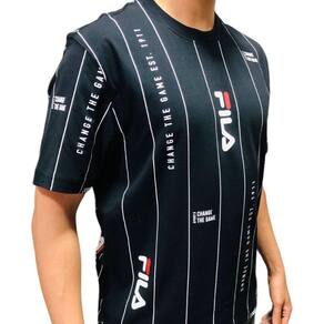 Camiseta masculina confeccionada em malha de poliéster com textura quadriculada. A modelagem raglan com manga curta proporciona maior liberdade de movimentos. As laterais deslocadas para frente e as costuras sem atrito com o corpo garantem maior conforto durante o uso. Possui gola careca, cobregola pespontado, e maxi estampa Fila Letter Outline em alto relevo centralizada na parte frontal.