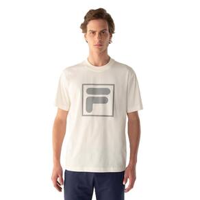 Camiseta masculina feita em algodão na modelagem comfort. Possui gola em ribana com pesponto duplo e acabamentos nas mangas e barra. Destaque para o silk FILA F-Box de 20 cm na frente, que reforça a elegância clássica da marca.