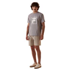 Camiseta masculina feita em malha de algodão na modelagem comfort. Possui gola em ribana com pesponto duplo e acabamentos nas mangas e barra. Destaque para o silk FILA F-Box de 20 cm na frente, que reforça a elegância clássica da marca.