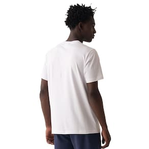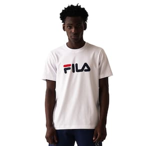 Camiseta masculina feita em algodão com certificações OEKO-TEX e BCI. Possui modelagem regular, gola em ribana, barra com fendas laterais e pesponto duplo nos acabamentos. A estampa FILA Linear em silk na parte frontal destaca o logo da marca, unindo sustentabilidade e estilo básico.