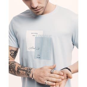 Camiseta Masculina confeccionada em malha de Algodão e Poliéster, não amassa com facilidade, garantindo um aspecto mais liso às peças.