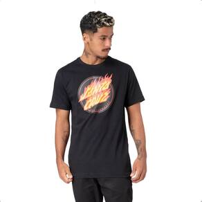 O grande destaque desta camiseta é a icônica estampa "Flaming Dot" da Santa Cruz, posicionada na parte frontal. Este design audacioso e vibrante é um símbolo reconhecido mundialmente na cultura do skate, refletindo a essência e a energia da marca Santa Cruz.