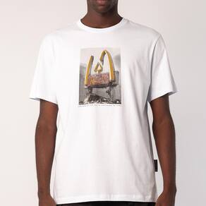Camiseta Mcd feita em modelagem regular, malha 150g, estampa frontal e etiquetas personalizadas.