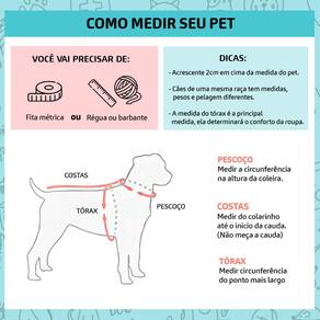 GUIA DE MEDIDAS: 1. Veja como medir seu pet na foto 2 do anúncio 2. Meça seu pet e compare com as medidas abaixo.OBS: Modelagem pequena, escolher um tamanho acima