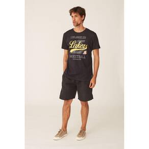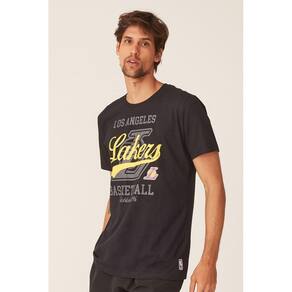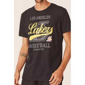Camiseta NBA Los Angeles Lakers Casual Preta com Logo Amarelo