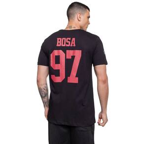 Exiba seu entusiasmo pelo San Francisco 49ers e pelo poderoso jogador Nick Bosa com esta camiseta masculina, que destaca o número 97 estampado nas costas. Confeccionada em 100% algodão, a camiseta oferece um toque suave e conforto duradouro, ideal para todos os momentos de torcida.