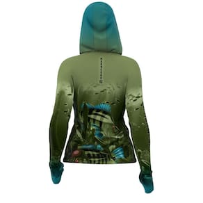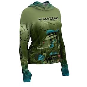 Descubra a Camiseta para pesca feminina manga longa com capuz Mar Negro X-Protection Tucuna Family, ideal para mulheres que buscam proteção e estilo em suas aventuras ao ar livre. Desenvolvida com tecido tecnológico de alta respiração e secagem rápida, oferece conforto térmico e bloqueio eficiente dos raios UV, garantindo segurança mesmo nas horas mais intensas de exposição solar. Seu design exclusivo com degradê vibrante em rosa e verde neon, aliado a detalhes que dão toque único, destaca sua personalidade. A modelagem ergonômica com punhos de polegar proporciona mobilidade e proteção extra contra insetos e arranhões. Perfeita para pesca, esportes aquáticos e atividades outdoor, essa camiseta une funcionalidade e atitude em um só produto.\nPrincipais atributos: - Tecido UV50+ com proteção solar comprovada - Secagem rápida e alta respirabilidade para conforto prolongado - Capuz integrado para proteção adicional contra sol e vento - Punhos com abertura para polegar, garantindo fixação e proteção - Design feminino exclusivo com cores vibrantes e detalhes diferenciados - Modelagem ajustada que valoriza o corpo sem perder a liberdade de movimento\nEscolha a camisete Mar Negro X Protection e desbrave novos horizontes com segurança e estilo.\nTabela de medidas: Marca: Não Informado