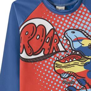 A Camiseta Praia Bebê e Infantil Dino Roar da Pingo Lelê é super divertida e colorida, além de oferecer proteção UV 50+, tem tecnologia Highclo que torna o elastano 3x mais resistente ao cloro, tecnologia DRY que facilita a evaporação do suor e é antimicrobiano. Ideal para os momentos ao sol e na água.