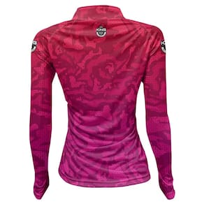 CAMISETA DE PESCA KING BRASIL COM PROTECAO SOLAR UV 50+ (KFF614) - FEMININA \nCamisa com proteção Solar, Tamanhos P ao GG \nProtege a Pele dos Efeitos nocivos do Sol \nUv protection e o fio inteligente que protege sua pele da ação dos raios UV-A e UV-B com fator de proteção solar de 30+ a 50+. \nPara os mais exigentes, as camisas da King Brasil com proteção UV protegem a pele durante a exposição ao sol com maior conforto e funcionalidade. \nDevido a modificações no DNA do fio, essa funcionalidade tem ação prolongada durante toda vida útil do produto. \nE a alta tecnologia e segurança que você sente na pele. \n- 100% poliéster\n- Proteção Solar UV\n- Impressão é feita em papel Epson de alta qualidade durável toda vida útil do produto.\n- Gola padre\n- Corte raglã\n- Tecido Tecno Dry Fit \n- Tecnologia de alta Absorção\n- Tecido leve\n- Conforto Térmico\n